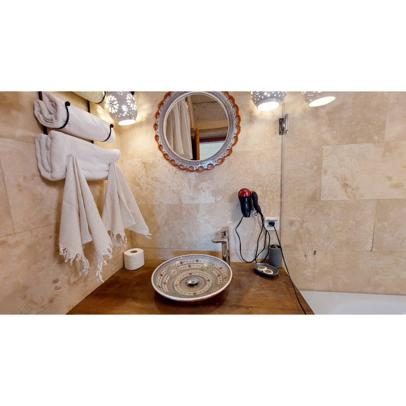 The 21 m² Arch Room Comfort invites you to experience an elegant escape where authentic stone architecture meets modern comfort. With its private terrace and original stone seating area, this charming room offers a delightful setting to enjoy every moment of the day against the breathtaking backdrop of Pigeon Valley and Mount Erciyes.